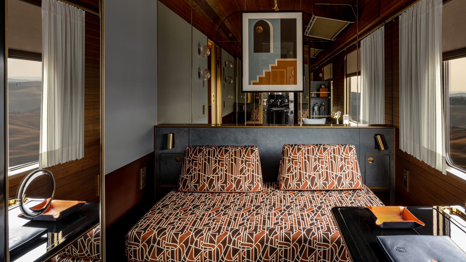 La Dolce Vita Orient Express departs Rome Ostiense in the afternoon, marking the start of an unforgettable luxury journey. As night falls, guests are treated to Italian-inspired creations by three-Michelin-starred Chef Heinz Beck, accompanied by live music.
